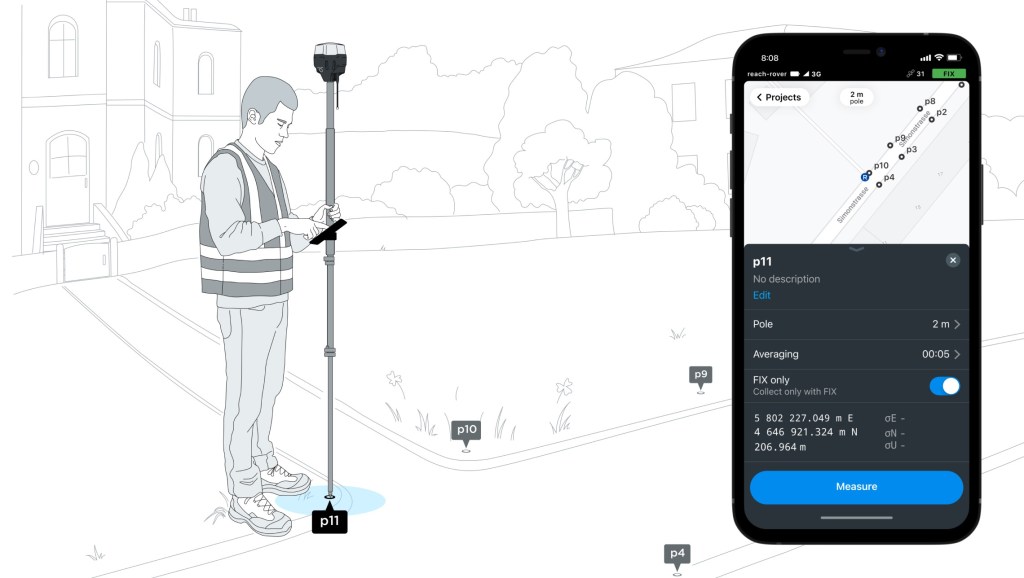 გაზომეთ და შეინახეთ წერტილები სანტიმეტრამდე სიზუსტით. დააექსპოერტეთ პროექტები და დაამუშვეთ CAD ან GIS პროგრამებში.